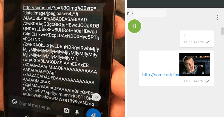 今天发布的博客文章称,这个漏洞是偶然发现的,研究人员IvánAriel Barrera Oro,Alfredo Ortega和Juliano Rizzo当时正在Signal上聊天,其中一人在URL中分享了一个XSS payload链接。出人意料的是,这个XSS被成功执行。
