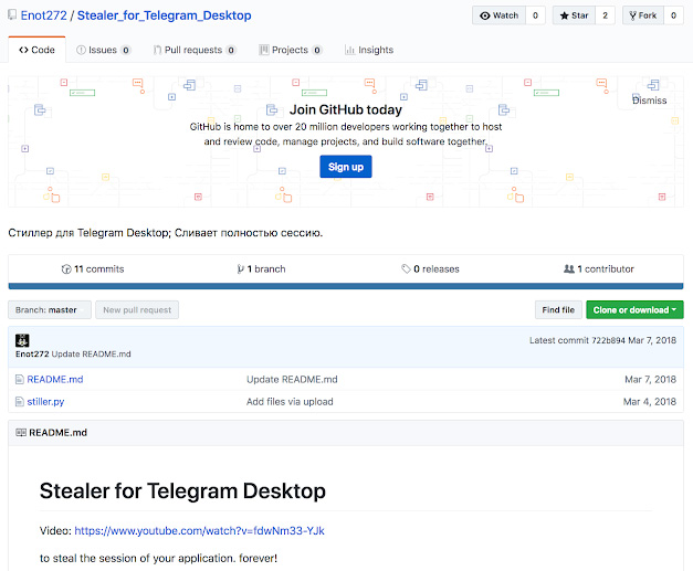 病毒的作者也略显高调,他为Telegrab发布了几个YouTube视频教程。甚至把部分代码发布到了GitHub上。