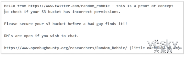 这是一个自动的文件夹,由安全研究者Robbie Wiggins创建。近一年来,Wiggins一直在扫描互联网上的AWS S3 buckets,并把这些信息留在不安全的服务器上。他一直这么做,以警告服务器所有者,并督促他们有人劫持或盗窃他们的数据之前,好好保护自己的服务器。