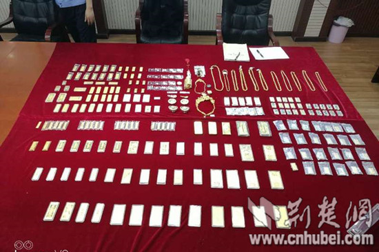 5月9日上午,张某心理防线崩溃,交待了赃物藏匿地点。当日,专案组民警赶赴湖北省云梦县的张某老家,在屋顶瓦片下起获20公斤黄金制品和裸钻等贵重物品。