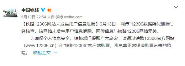 对于昨天与A站一同出现的摩拜和12306,铁总和摩拜都已经发表官方声明,表示目前没有发现用户数据泄漏。