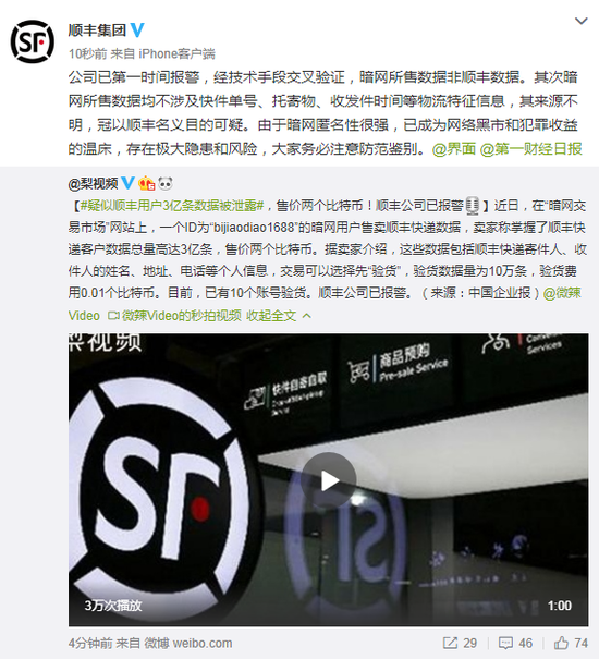 网购带来方便的同时,也催生了一个社会问题,那就是自己个人信息轻松被快递公司给卖了出去了,于是乎各种骚扰电话就随之而来。近日,有不少网友发现,一个ID为“bijiaodiao1688”的暗网用户售卖顺丰快递数据,卖家称掌握了顺丰快递客户数据总量高达3亿条,售价两个比特币。