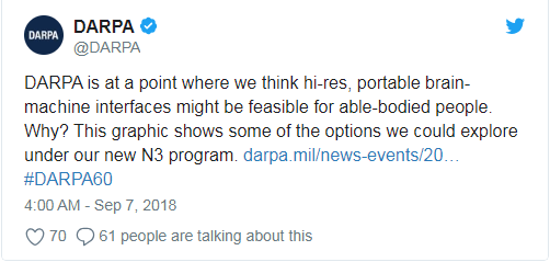 作为五角大楼的智库之一,美国国防部高级研究计划局迎来了成立 60 周年的纪念日。在本周举办的为期三天的研讨会上,该机构讨论了一系列令人震惊的研究项目,其中包括“下一代非外科神经技术”(简称 N3 项目)。N3 旨在建立一个不需要侵入型手术,即可实现的脑机接口(BCI)。