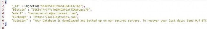 更重要的是,除了电子邮件地址之外,数据库还有关于邮件服务器在联系时发送状态的信息,详细说明邮件是否已发送或服务器是否拒绝了电子邮件。正如Diachenko所发现的那样,自从9月13日互联网设备搜索引擎将其编入索引时,该数据库处于在线状态并被曝光,其中包含“受损”标签和0.4 BTC赎金票据。