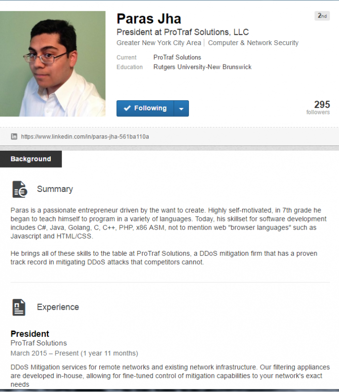罗格斯大学计算机科学学生 Paras Jha 是安全调查记者 Brian Krebs 通过跟踪其网络痕迹识别出来的。Paras Jha 使用化名 Anna Senpai 开源了 Mirai 的代码,此举是为了以防万一 Jha 或其同谋控制的计算机被发现 Mirai 代码后可以进行推诿。