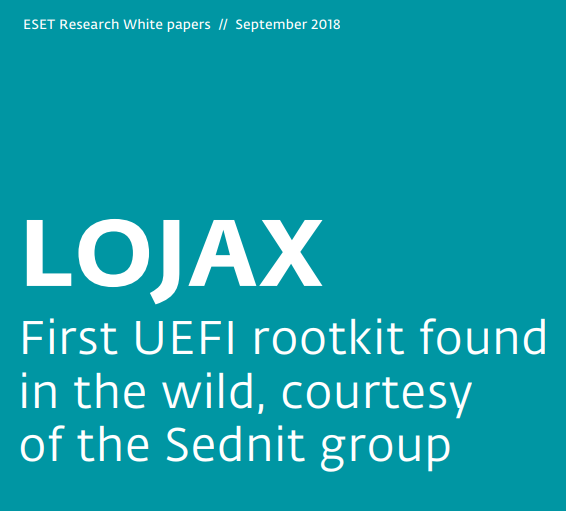 ESET 安全专家刚刚宣布,他们已经发现了首个在野外被利用的“统一可扩展主机接口”(UEFI)rootkit 案例。这款恶意软件被称作 Lojax,被“高级持续威胁”(APT)的 Sednit 组织(又名 APT28、STRONTIUM、Sofacy、或 Fancy Bear),用于攻击巴尔干和欧洲中东部的政府机构。安全研究人员表示,他们发现该 UEFI rootkit 捆绑了能够“修补”受害者系统固件的工具,以便将 Lojax 恶意软件安装在目标系统的底层深处。