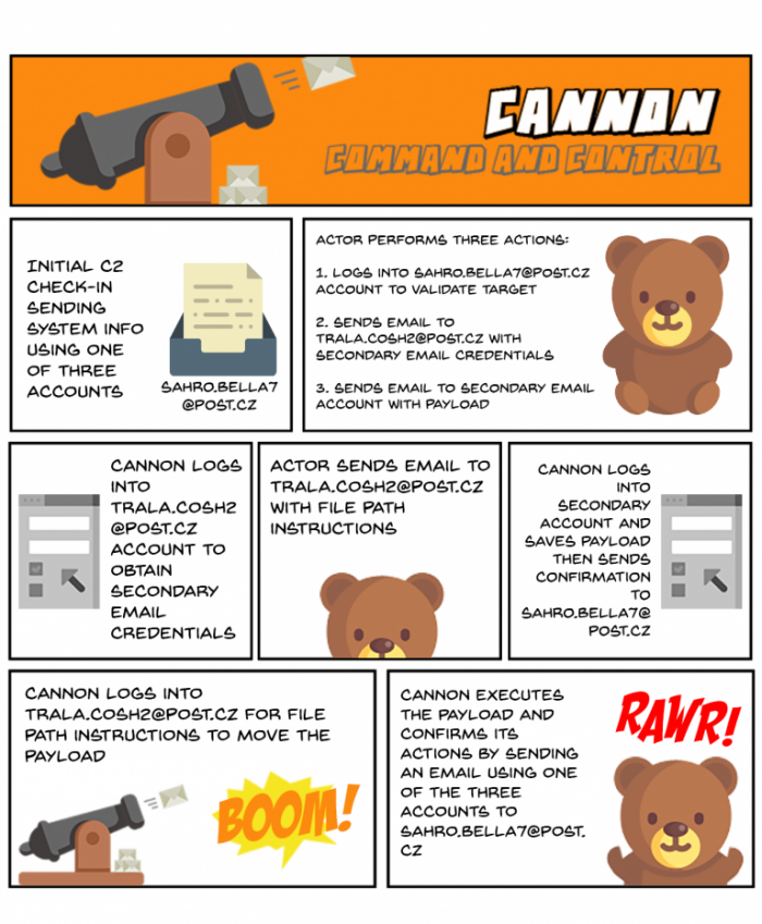 Palo Alto Networks认为,Cannon背后的黑客是一个情报官员已经结束的团体,是俄罗斯军事间谍机构GRU的一部分。有时被称为Fancy Bear,黑客组织也被指责在2016年黑客攻击民主党全国委员会。Palo Alto Networks威胁情报副主任Jen Miller-Osborn表示,黑客工具使用电子邮件向黑客可以访问的帐户发送信息既聪明又新颖。
