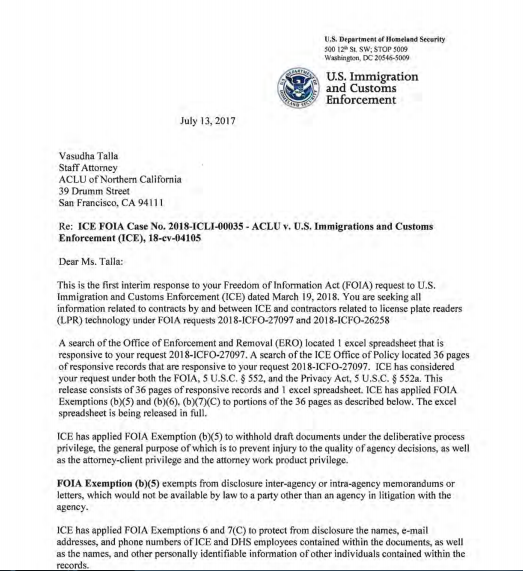 这些文件是通过《信息自由法案》(Freedom of Information Act)诉讼获得的,包括电子邮件和内部ICE政策,详细说明了该机构对大规模私人数据库的访问,这些数据库被公民自由倡导者批评为过度侵入。该数据库由一家名为Vigilant Solutions的公司运营,允许执法部门根据以前编制的车牌数据跟踪汽车,使警方能够密切监控车辆的移动。