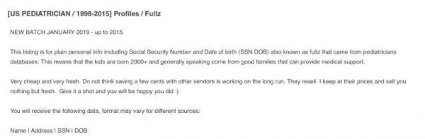 近期,在暗网上出现了一波涉及3-20岁未成年人的信息数据贩卖,具体来说是1998年到2015年出生的儿童的就诊记录,贩卖者声称他们收集的数据来自医院。