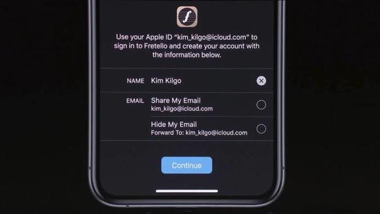 费德里吉说:“一个简单的API允许开发者在他们的应用程序中添加一个Sign in with Apple按钮。用户只需点击它,就可以在设备上用FaceID进行身份验证,然后苹果会帮助用户随机生成新账户进行登录,无需透露任何新的个人信息。”